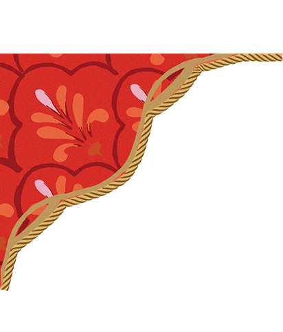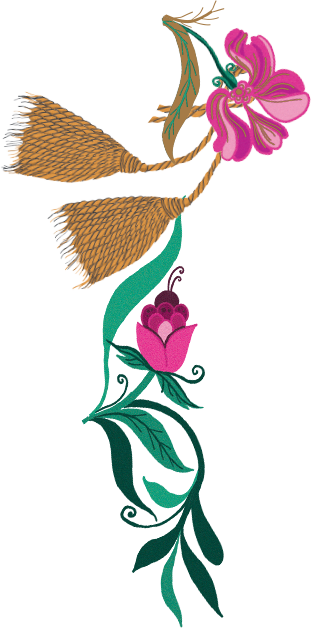 王宮の天窓から差し込む光と庭園の花々を束ねた